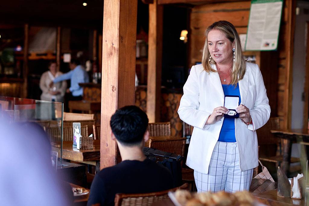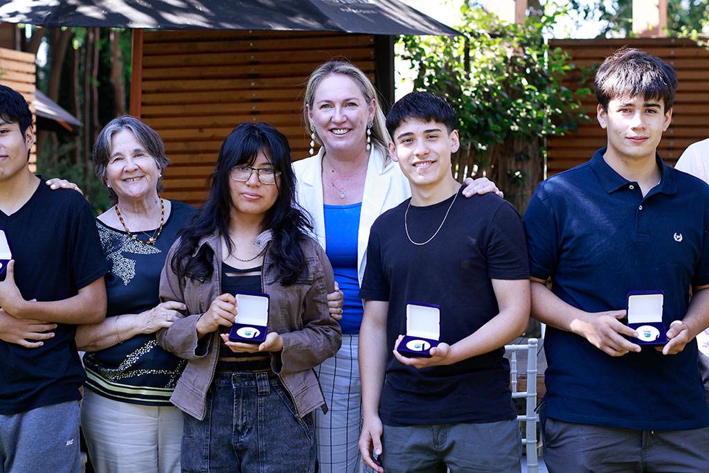 Durante la actividad, la alcaldesa entregó una medalla de reconocimiento a cada uno de los estudiantes, como símbolo del esfuerzo, la perseverancia y la excelencia académica alcanzada, relevando además el rol de las comunidades educativas en el proceso formativo.