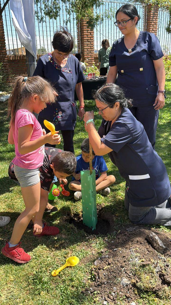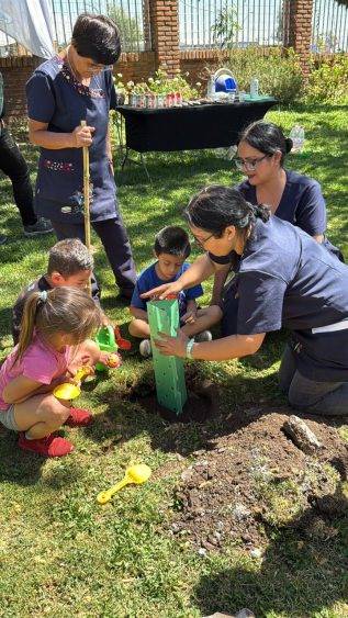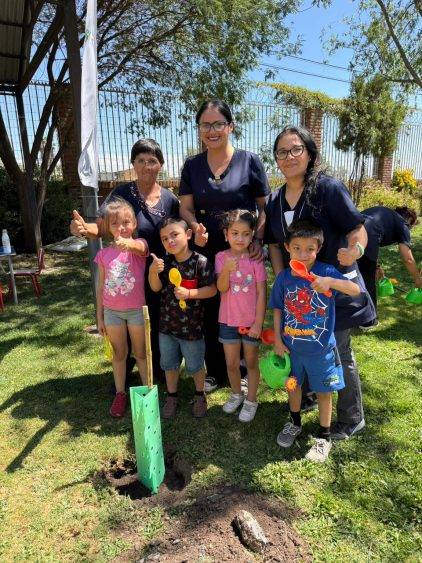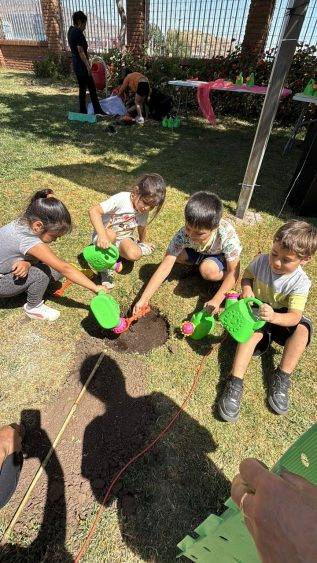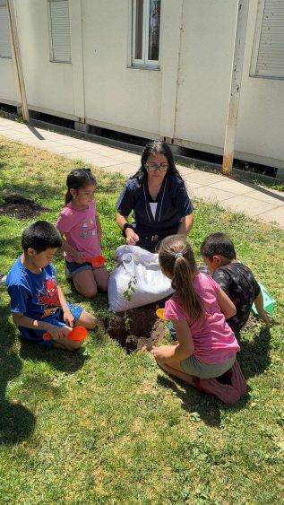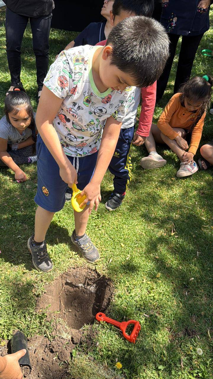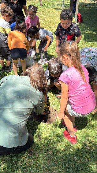 Previo a la plantación, los niños y niñas del Kinder F participaron en una charla educativa sobre la flora y fauna local, donde aprendieron la importancia de los árboles nativos, las especies que conviven en su entorno y el valor de cuidar los espacios naturales. Esta instancia les permitió comprender el impacto positivo que tendrá esta nueva área verde en su establecimiento.