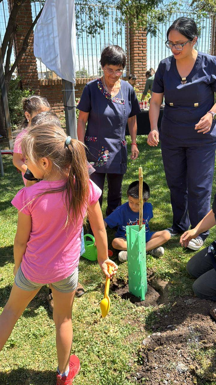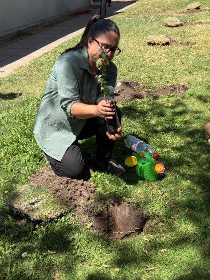 “La actividad del día de hoy está enmarcada dentro de un proyecto que nos entregó la municipalidad, con el fin de plantar árboles en nuestro establecimiento para favorecer tanto los espacios de sombra y los recursos hídricos, ya que son arbolitos que no requieren tanto uso del agua.”