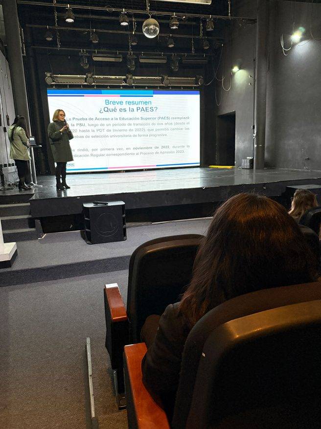 La actividad reunió a más de 50 estudiantes de cuarto medio del Liceo Santa Teresa del Carmelo y el Liceo Rigoberto Fontt, quienes recibieron información clave sobre el proceso de postulación a la PAES regular y PAES de invierno, los plazos importantes y los requisitos del sistema de admisión.