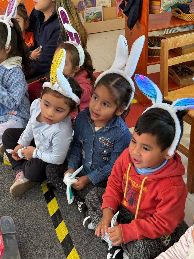 La mañana del lunes 21 de abril estuvo llena de sonrisas y dulzura en la Sala Cuna y Jardín Infantil Alicia Morel, donde los niños y niñas disfrutaron de una especial jornada junto al Conejo de Pascua y una visita muy significativa: la alcaldesa de Colina, Isabel Valenzuela.