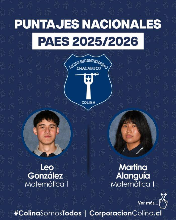 Al respecto, la alcaldesa de Colina y presidenta de la Corporación Municipal de Desarrollo Social, Isabel Valenzuela, valoró este importante logro para la comuna, señalando que “estos puntajes nacionales son una muestra concreta de que cuando existe un trabajo serio, sostenido y comprometido entre las comunidades educativas, los equipos docentes y las familias, los resultados llegan. Como municipio creemos firmemente en la educación pública y seguiremos fortaleciendo este trabajo conjunto para abrir más oportunidades y mejores futuros para las y los estudiantes de Colina”.