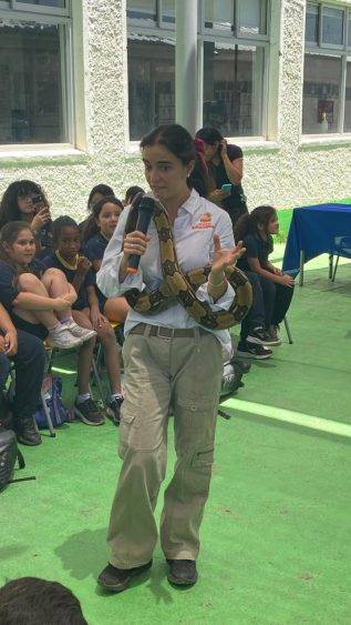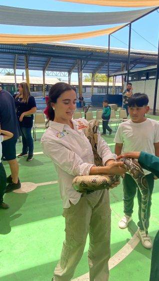 Amanda Quiroz, estudiante del Liceo Andalien, compartió su emoción: “Me encantó, fue muy divertido. Aprendí cómo tomar a los animales; pudimos hacer muchas cosas y tocar una serpiente. Todo súper divertido”.